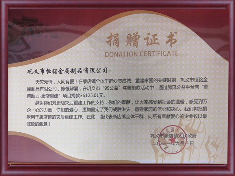 “99公益”捐贈證書 -